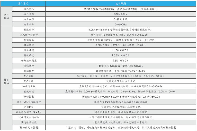 TVF15系列變頻器適用于三相異步電機(jī)的速度與轉(zhuǎn)矩控制,具有優(yōu)異的動態(tài)性能和強(qiáng)大的過載能力,采用模塊化的高功率密度設(shè)計,可在較惡劣的工況下長時間可靠工作,滿足多種應(yīng)用場合,可用于傳送、機(jī)床、風(fēng)機(jī)、水泵、紡織等各種電機(jī)驅(qū)動場合。